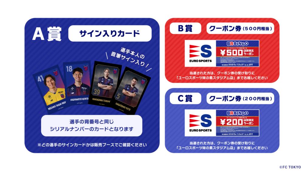 ※味の素スタジアムでのホームゲーム開催日当日は店舗横の特設販売ブースにて販売と景品引換を行います。