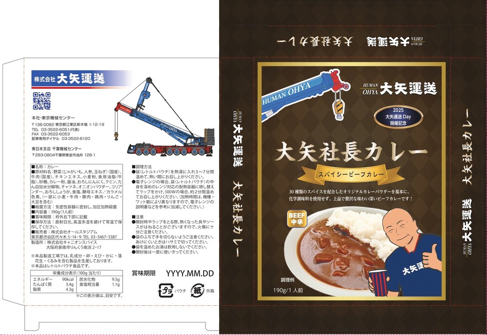 ブースにお越しいただいた方にくじ引きを実施し、抽選にて当選した先着50名様に「大矢運送オリジナルパッケージの大矢社長カレー(レトルトカレー)」をプレゼントいたします。