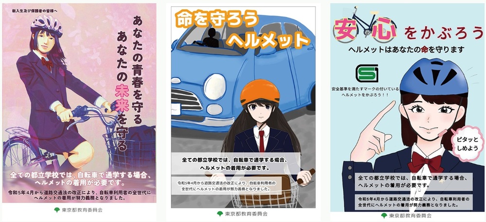 東京都教育庁では昨今、都立高校に通う高校生の自転車事故が増加傾向にあり、令和6年度から全ての都立学校において自転車通学の際は必ずヘルメットの着用を求める方針を立てました。自分の、そして、みなさんの未来を守るためにすべての世代で自転車に乗る際はヘルメットを着用しましょう。
