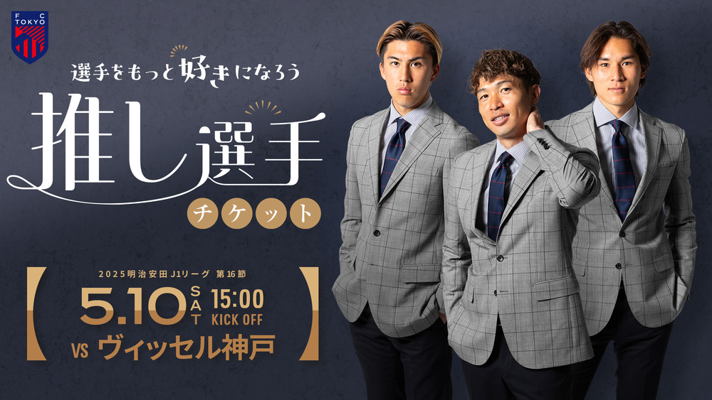 5月10日(土) 205 明治安田J1リーグ 第16節 vs ヴィッセル神戸 (15:00キックオフ/味の素スタジアム)にて、選手をもっと好きになってもらうための企画チケット『推し選手チケット』の販売を行います。
