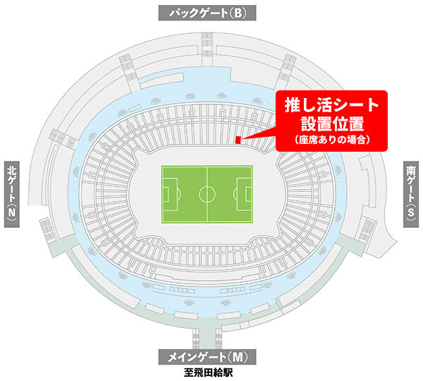 ・『推し活シート 座席付き』の設置位置であるバック指定席はFC東京の応援席となります。ビジターグッズを着用してビジターチームの応援はできません。