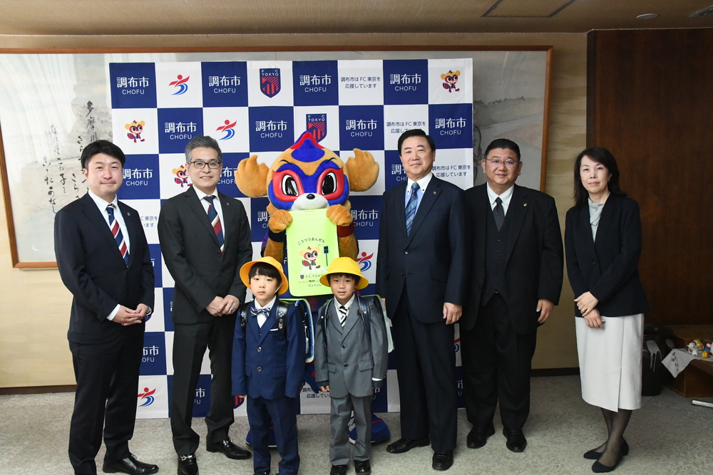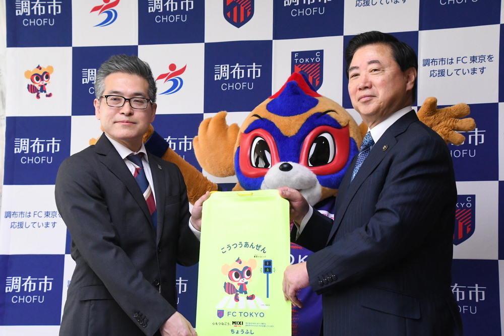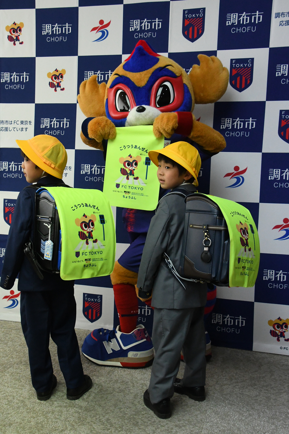 このたび、調布市の子どもたちの交通事故防止を願い、新小学1年生となる約2,300名を対象にFC東京「オリジナルランドセルカバー」を寄贈いたします。