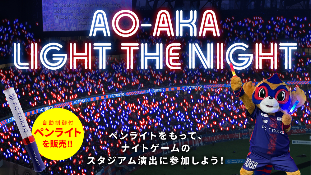 ぜひ、自動制御付きペンライト(AO-AKA LIGHT THE NIGHTペンライト)をご購入いただき、『AO-AKA LIGHT THE NIGHT』でスタジアムを盛り上げましょう!