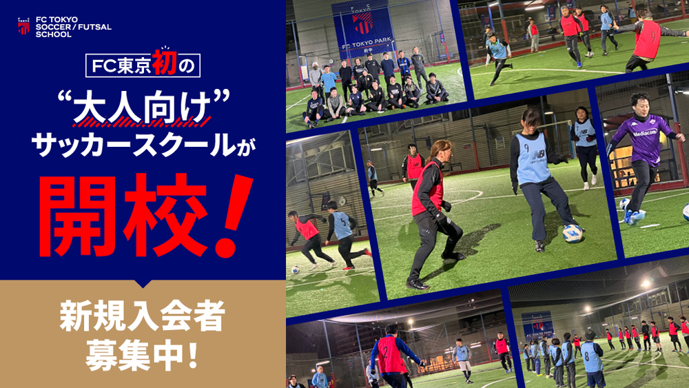 このたび、FC東京サッカー・フットサルスクールでは、クラブ初となる「おとなのサッカースクール」を府中スクールに開校いたします!