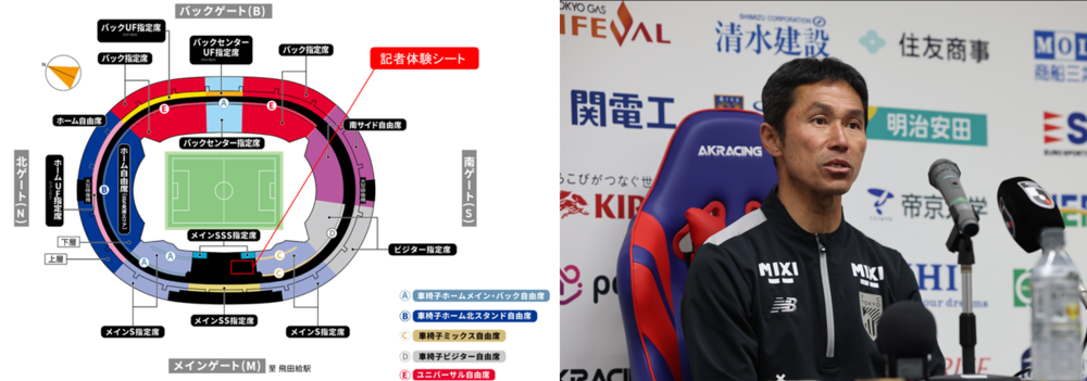 試合を観戦したあとは、記者の方と同様に試合後の監督記者会見の様子を記者会見場でご観覧いただき、まるで記者になったような体験を味わっていただけます。
