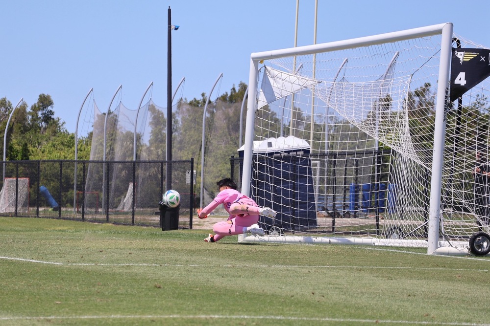 東京の選手たちは確実にPKを沈める中で、新堀選手が相手のキックを完全に読み切り、2本セーブ!