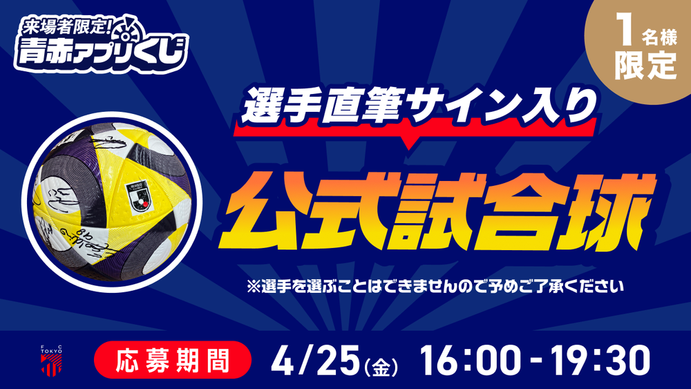4月25日(金)FC東京vsガンバ大阪にて、FC公式アプリを活用した来場者限定の「青赤アプリくじ」を実施します。