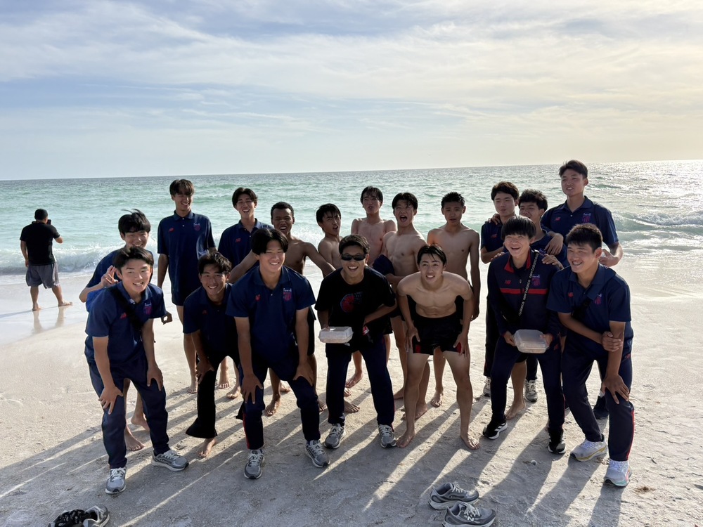 決勝観戦の後はバスに乗り込み、近くのビーチに移動し、大はしゃぎ!
