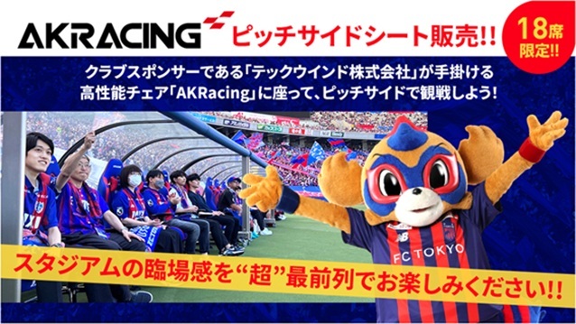 今シーズンもオフィシャルパートナーである「テックウインド株式会社」が手掛ける高性能チェア『AKRacing』に座って、ピッチサイドで試合観戦が楽しめる「AKRacingピッチサイドシート」を販売いたします!