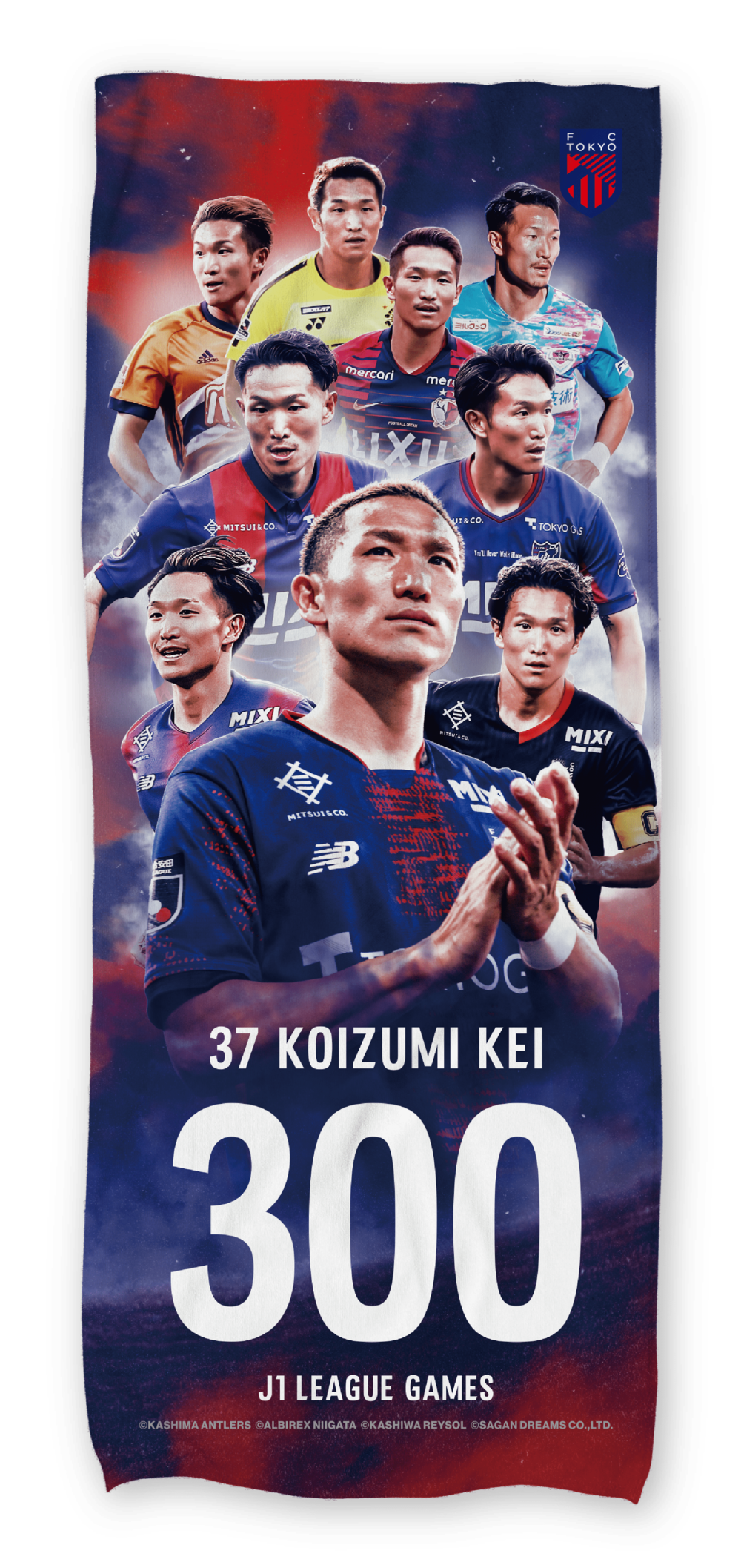 4月25日(金)2025明治安田J1リーグ vsガンバ大阪(19:30キックオフ/国立競技場)にて、小泉 慶選手がJ1リーグ戦通算300試合出場を達成いたしました。これを記念して小泉慶選手J1リーグ戦通算300試合出場記念グッズを受注販売いたしますのでぜひお買い求めください。