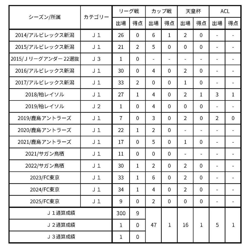 「東京だけではなく、アルビレックス新潟、柏レイソル、鹿島アントラーズ、サガン鳥栖というこれまで在籍してきたクラブで出場を積み重ねてきたことでこの記録を達成することができました。ここまで関わってくれたすべてのみなさまに感謝しています。300試合出場という節目の試合を東京で迎えられたことを嬉しく思います」
