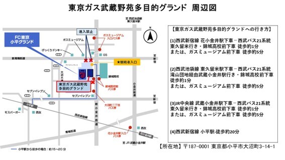 JR中央線『武蔵小金井駅』下車、西武バス(21系統 東久留米行)『錦城高校前』下車、徒歩1分