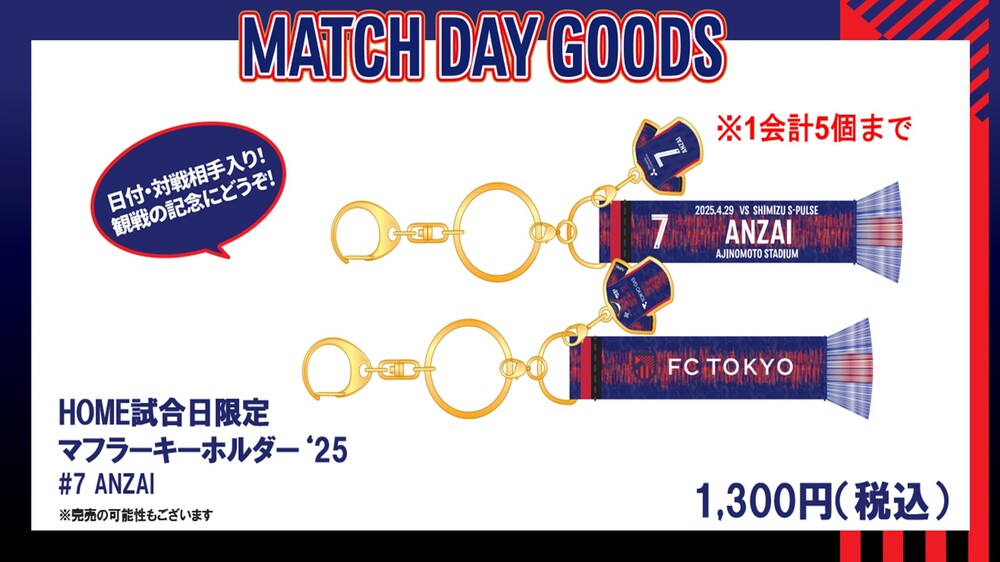 ホームゲーム時に、日付、対戦相手の入ったマッチデーグッズを販売いたします。選手も毎回異なります!試合観戦の記念にぴったりな商品となっております。