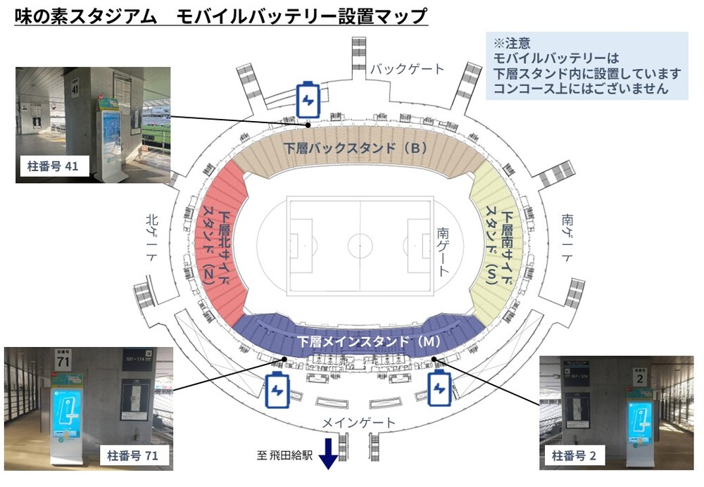 味の素スタジアムご協力のもと、どこでも借りられて、どこでも返せるモバイル充電器シェアリングサービス『ChargeSPOT』の導入が開始されました。