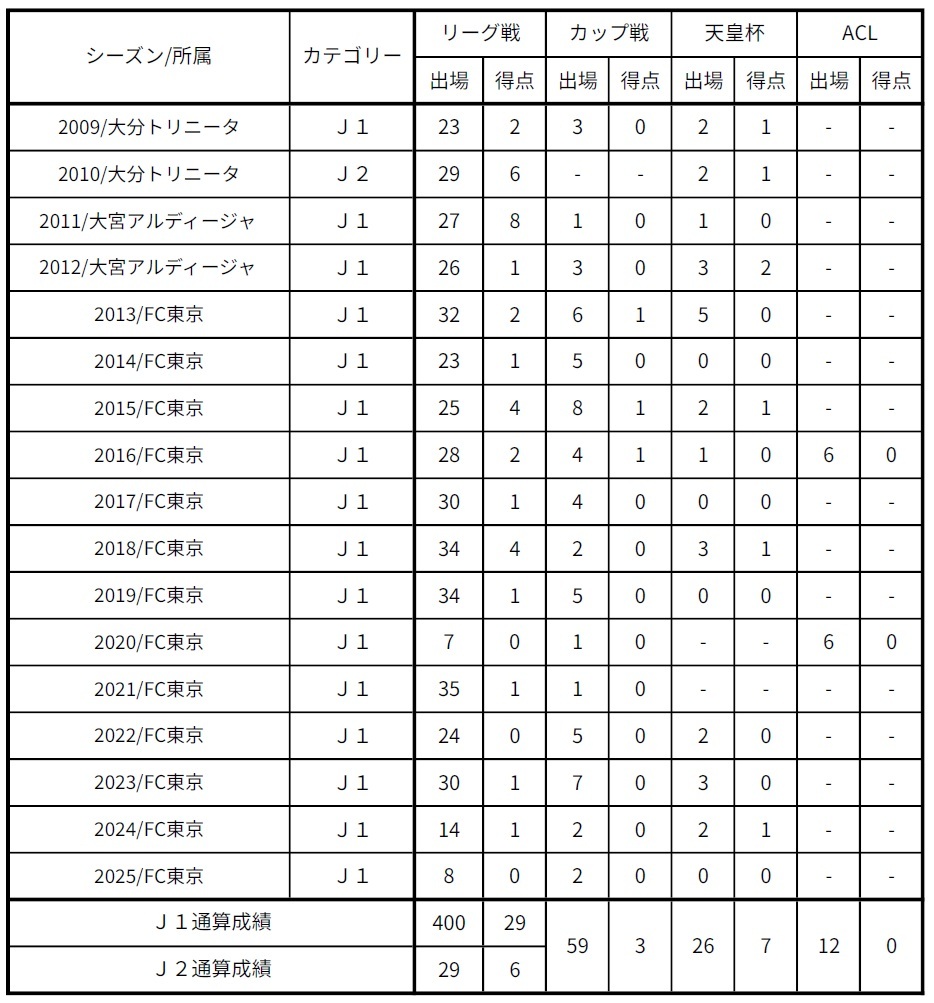 嬉しいことだけではなく、辛く苦しい経験もして、選手として、人としても成長する機会を与えてくれた大分トリニータ、大宮アルディージャ、FC東京には本当に感謝しています。