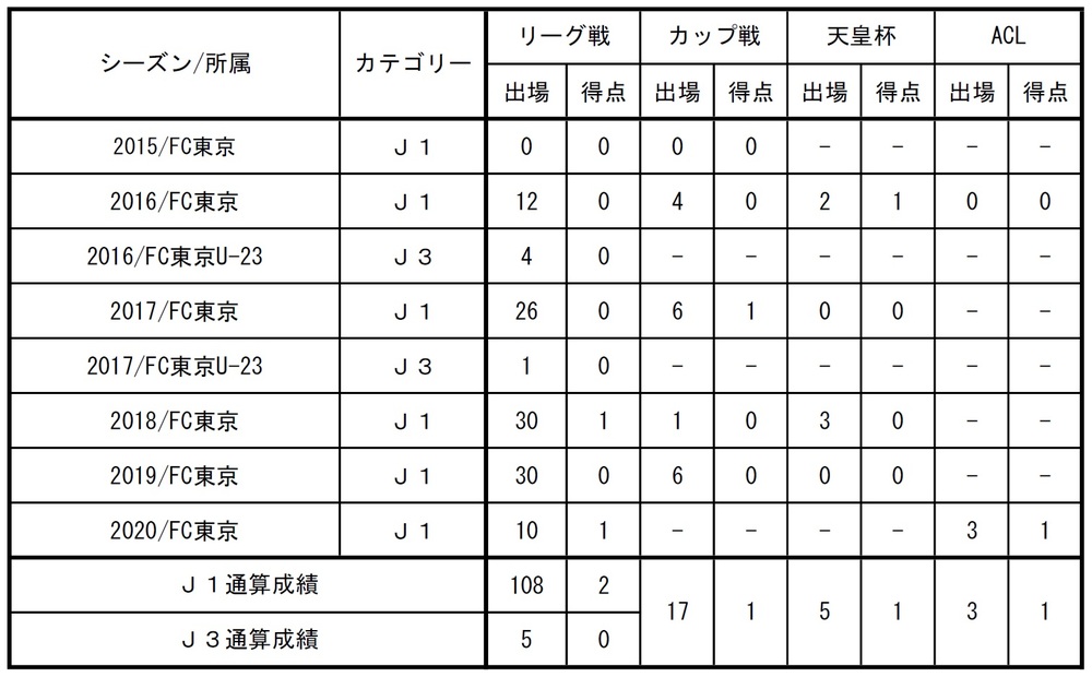 □出場記録(2025年5月23日 時点/国内クラブ所属時のみ)