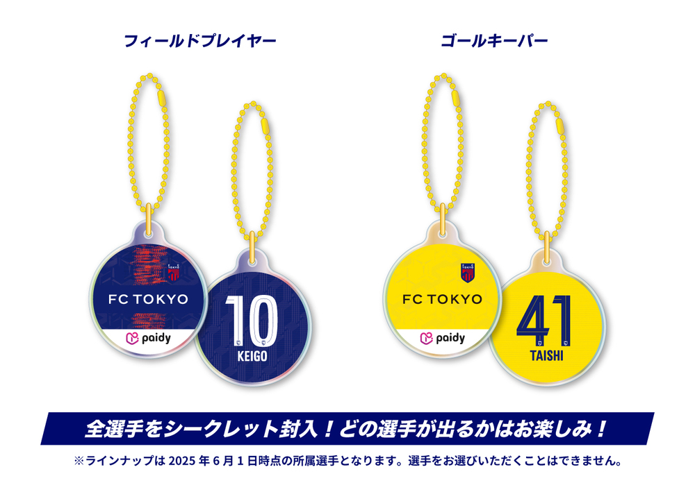 「あと払いペイディ」アプリをダウンロードして、当日ブースにて画面を提示いただくと、選手のサイン入りグッズが当たる抽選会にご参加いただけます!参加賞として、先着2,000名様に「FC東京×あと払いペイディ オリジナルキーチェーン」をプレゼント!