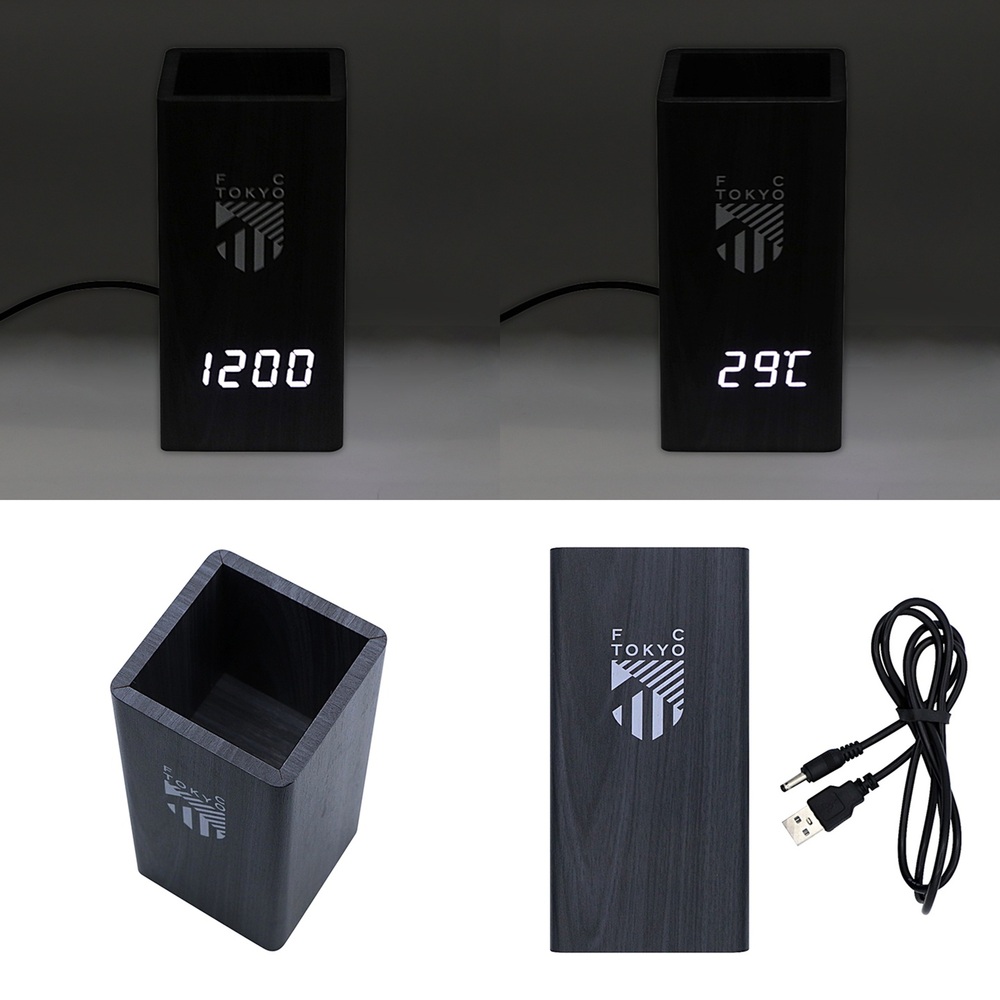 スタイリッシュな木製LEDクロックで、ペンスタンドとデジタル時計が一体化した便利なアイテムです。デスク上で筆記用具を整理しながら、時間管理もできるため、オフィスや自宅での使用に最適です。