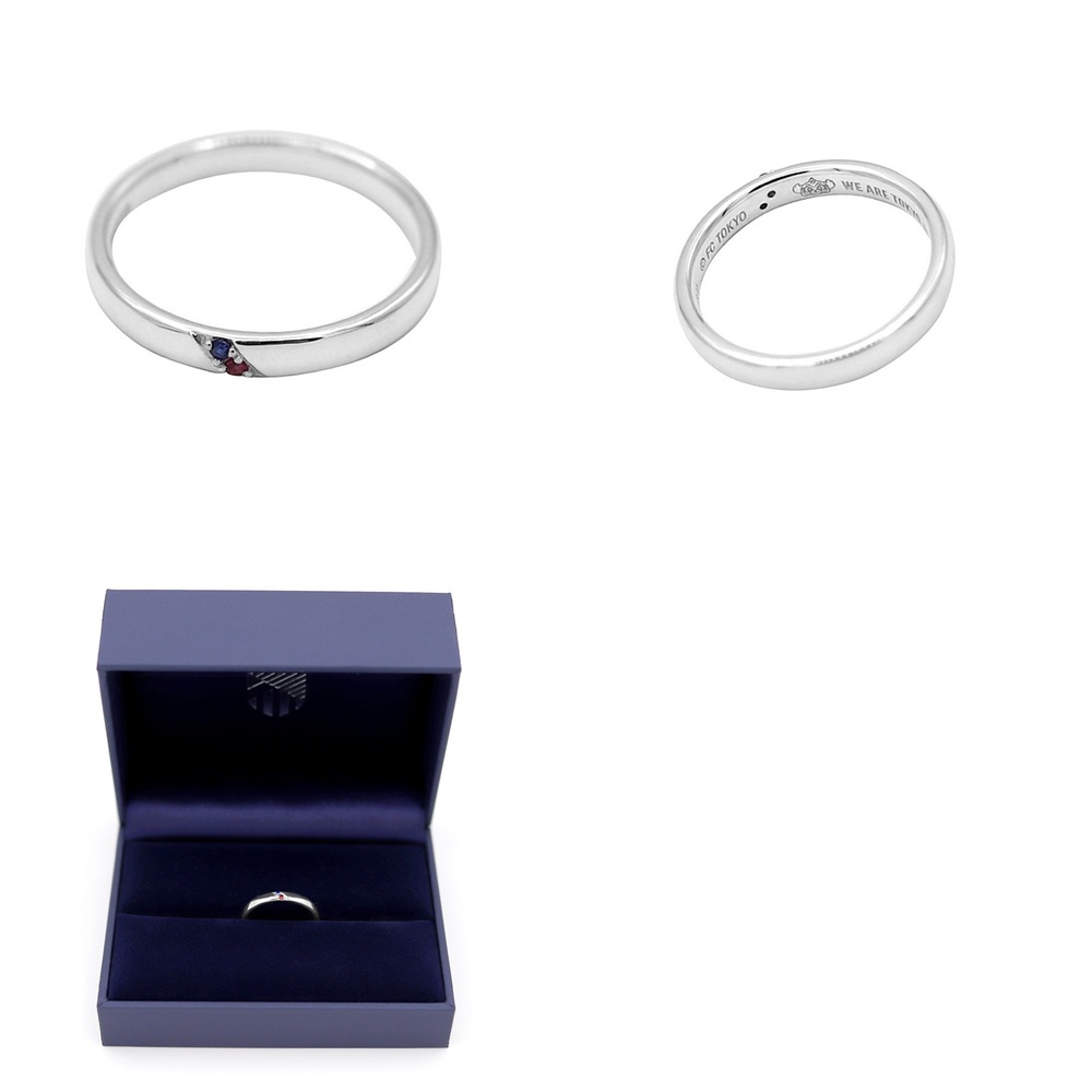 デザインはクラブカラーの青赤をイメージし、青には『誠実』を意味するサファイア、赤には『情熱』を象徴するルビーを使用。