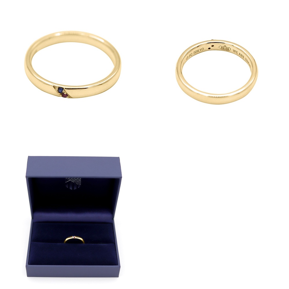 さらにリングの内側には、東京ドロンパのマークと、「WE ARE TOKYO FAMILY!!」というファン・サポーターへの特別なメッセージを刻印。ブライダルリングやペアリングとしてはもちろん、 ファッションリングとしてもチームとともに歩み続ける証しとした特別なジュエリーです。