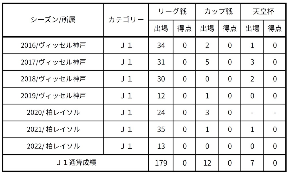 □出場記録(2025年6月7日時点/国内クラブ所属時のみ)