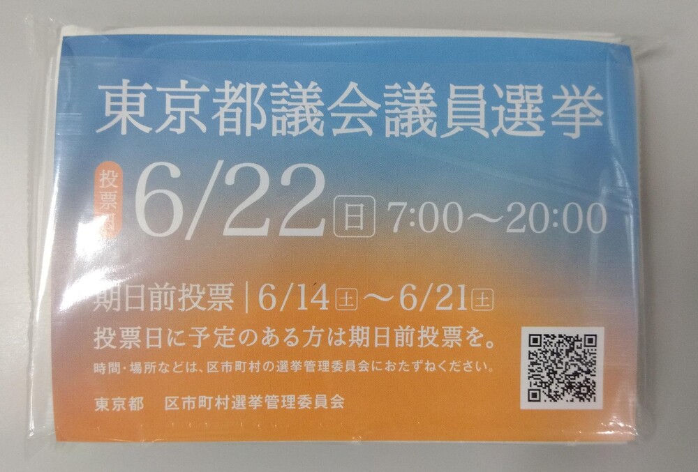 東京都議会議員選挙の投票日は6月22日(日)です。期日前投票は6月14日(土)より開始となります。選挙の詳細は下記の特設ホームページよりご確認ください。