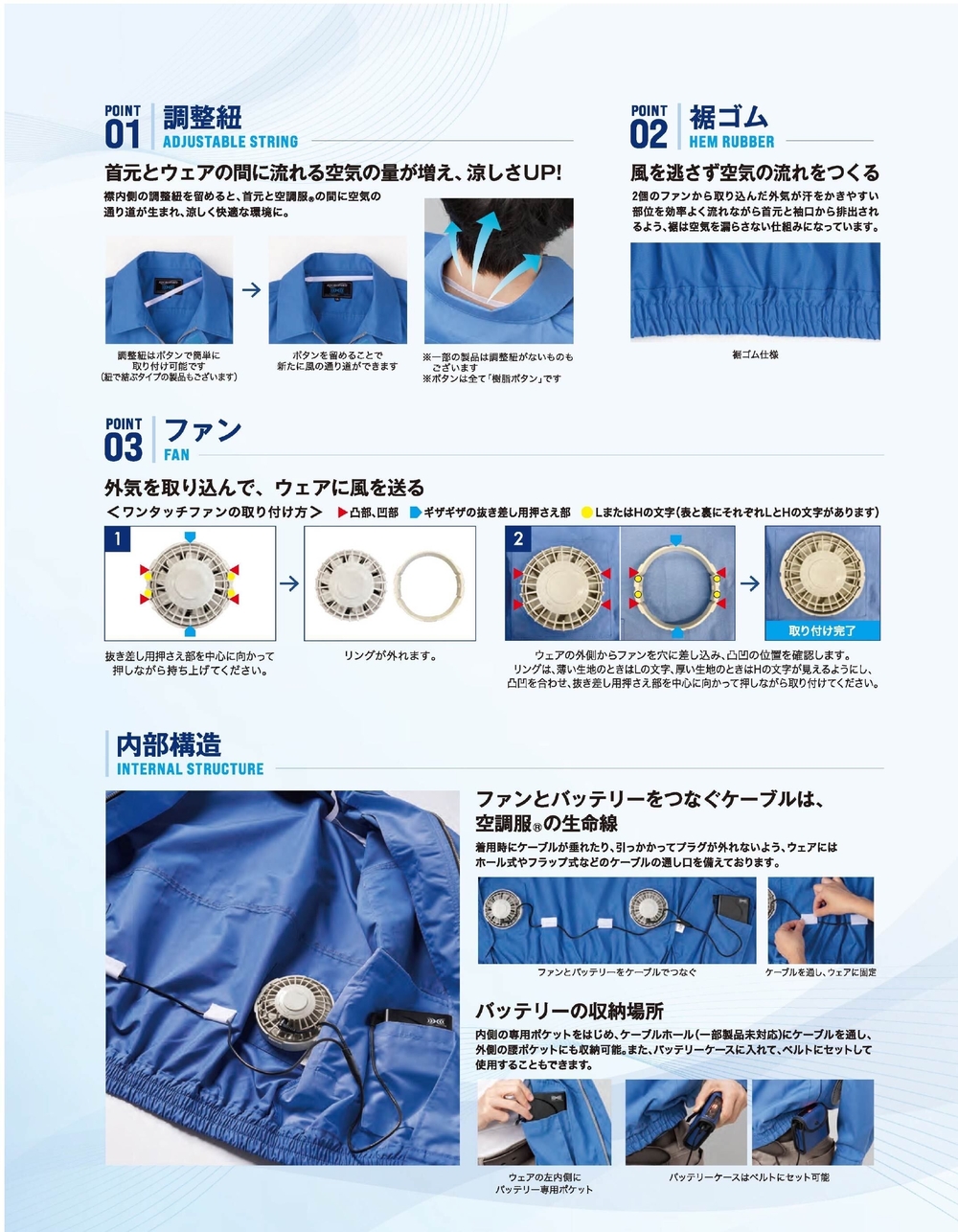 ※掲載商品は、㈱セフト研究所・㈱空調服の特許および技術を使用しています。「空調服」は㈱セフト研究所・㈱空調服のファン付きウェア、その附属品、およびこれらを示すブランドです。「空調服」「生理クーラー」「DC空調服」ロゴは、㈱セフト研究所・㈱空調服の登録商標です。
