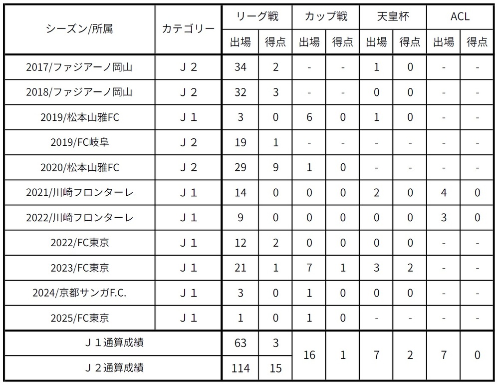 ※2015シーズン流通経済大学所属時に天皇杯2試合出場を記録
