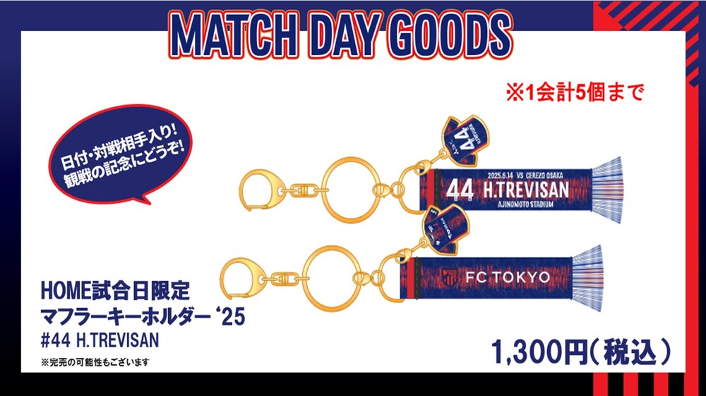 ホームゲーム時に、日付、対戦相手の入ったマッチデーグッズを販売いたします。選手も毎回異なります!試合観戦の記念にぴったりな商品となっております。