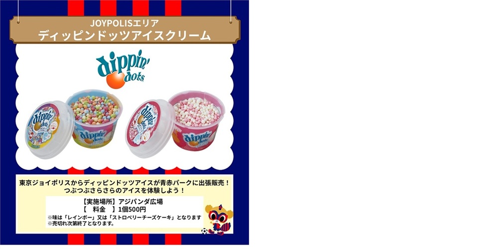 ・本日青赤パークsupported by JOYPOLISにて実施予定でした『東京ドロンパふわふわ』、『カーニバルゲーム』、『GoGoShooting!!』は雨天のため、休止とさせていただきます。今後の天候によっては、再開する場合がございます。