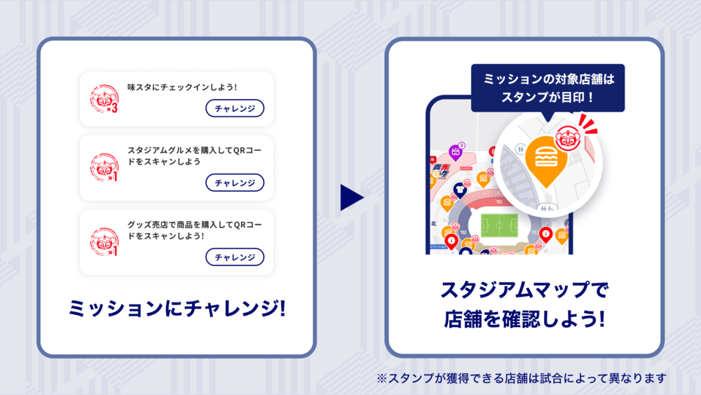 ミッション対象店舗はアプリの『スタジアムマップ』から確認できます。