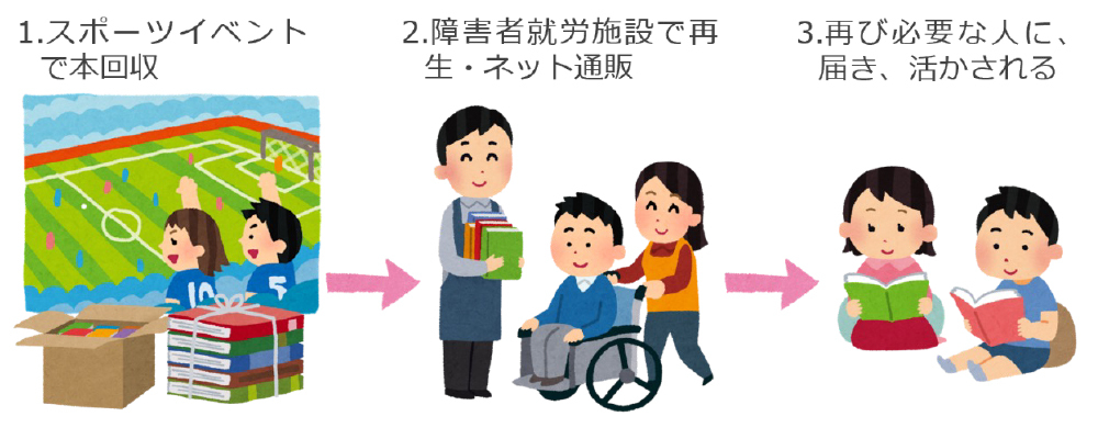 『FC東京ブックドライブ』は、ファン・サポーター、地域のみなさま方のご協力により、読み終わった本などを回収させて頂き、障がい者就労支援に役立てる活動です。