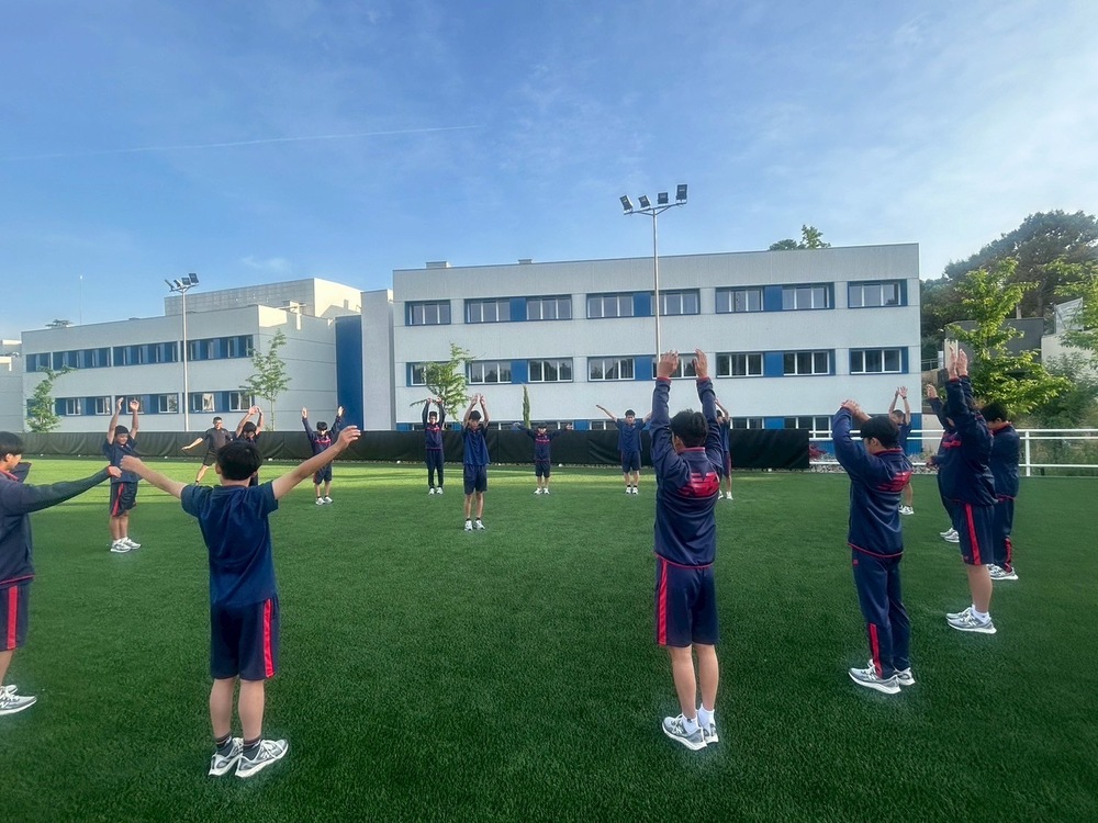 明日は、午前中に中学生としての本文である勉強をします。午後にはアトレティコ マドリードのスタジアムを観光してから、アトレティコ マドリードのアカデミーと練習試合を行います。