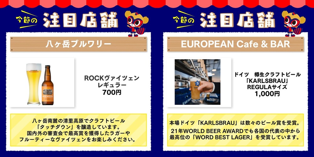 7月19日(土)と8月10日(日)の2試合で『BEER FESTIVAL』を開催いたします。
