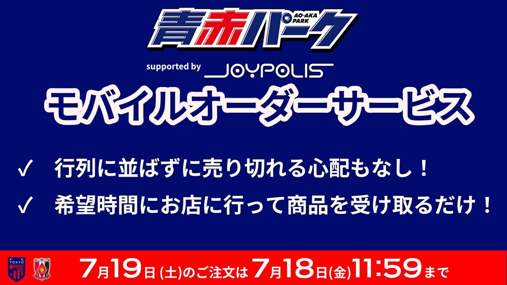 7月ホームゲームにおける青赤パークsupported by JOYPOLISモバイルオーダーサービスのお知らせ