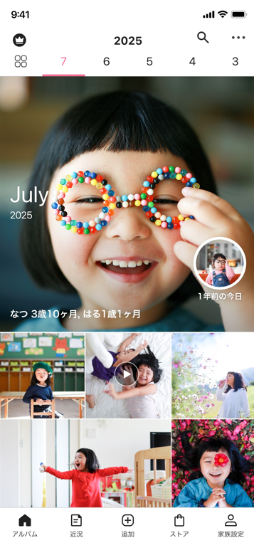 ママ・パパが撮った子どもの写真や動画を,祖父母や親戚など,招待した家族だけに共有できるアプリです。写真・動画は無料無制限でアップロード可能なので子どもとの日常を気軽に共有でき,子どもの笑顔や成長にコメントしあうことで,家族間で愛情あふれるコミュニケーションが生まれます。これまで多くのご家族にご利用いただいており,2025年1月には利用者数が2,500万人※を突破しました。