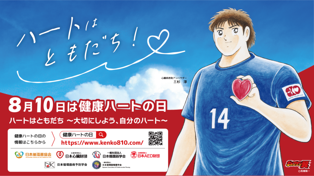 脳卒中と心臓病に代表される循環器病は、がんに次いで日本人の死因の第2位であることが知られていますが、医療費においては第1位、介護の原因疾患でも第1位と、医療のみならず社会的に大きな問題となっています。一方で、がんとは異なり、正しい教育により予防が極めて有効であることから、2019年に施行された循環器病対策基本法においては、国民をあげての予防啓発の推進が掲げられています。日本心臓財団が1985年に8月10日(はーと)を『健康ハートの日』と定め、毎年8月10日前後に心臓病の予防啓発イベントを開催してきました。2021年から日本循環器学会、日本循環器協会、日本心臓財団、2023年から日本AED財団が加わり4団体が協力して健康ハートの日実行委員会が立ち上がり、さらなる普及啓発を進めています。