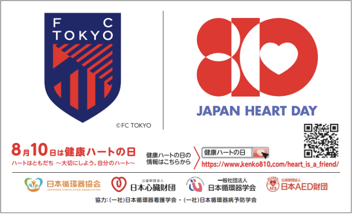 8月10日(日) 2025明治安田J1リーグ 第25節 vs鹿島アントラーズ(19:00キックオフ/味の素スタジアム)において、健康ハートの日実行委員会と協力し、心臓病・脳卒中などの循環器病の予防啓発事業『健康ハートの日』のPRを実施いたします。