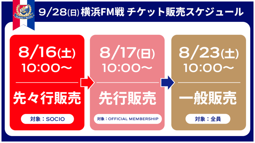 8月16日(土)の先々行販売よりSOCIOのみなさまは会員価格にてご購入いただけます(1試合4枚まで)。