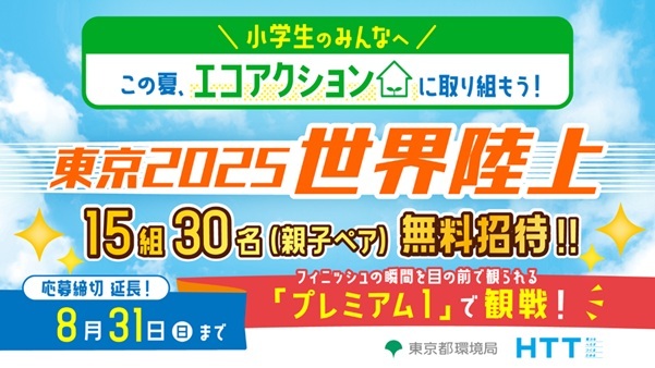 都内在住・在学の小学生を対象にエコアクションを考えて、おうちで取り組んだ方のなかから抽選で、東京2025世界陸上競技選手権大会(東京2025世界陸上)最終日の観戦チケットを15組の親子を無料でご招待します。