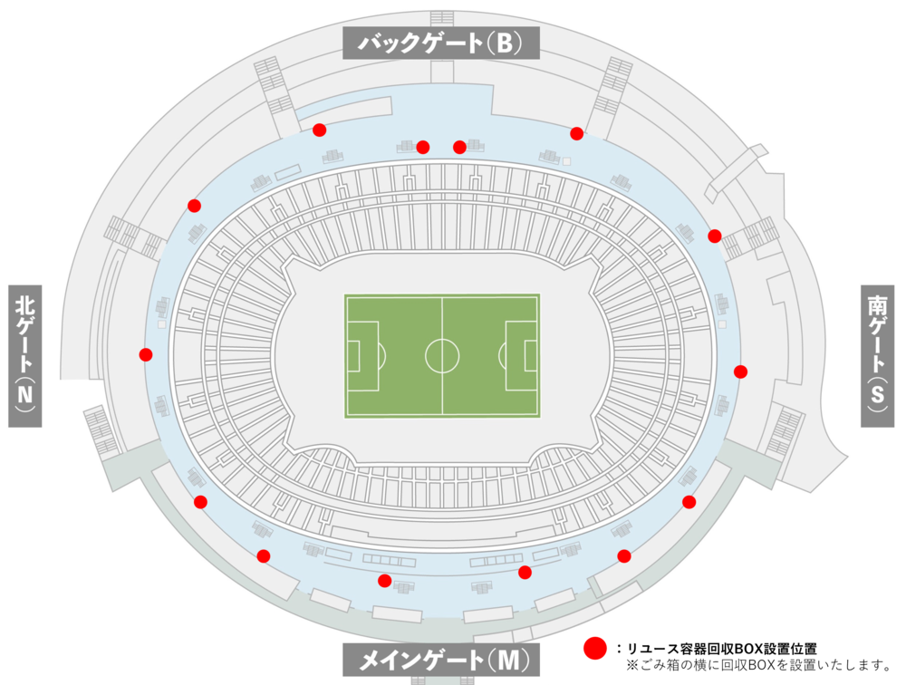 ※コンコース内に設置予定のごみ箱の横にリユース容器回収BOXを設置いたします。場内に持ち込まれたリユース容器はゴミ箱に入れず容器回収BOXへ返却をお願いいたします。
