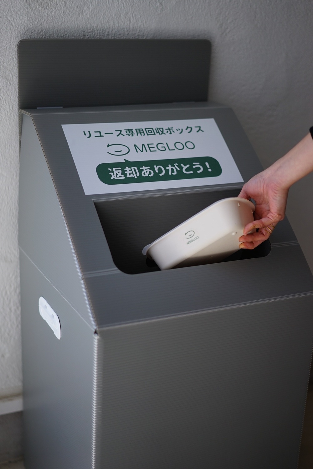 リユース食器はゴミ箱に捨てず、各エコステーションに設置しております返却ボックスか、ご購入いただいた店舗へご返却ください。