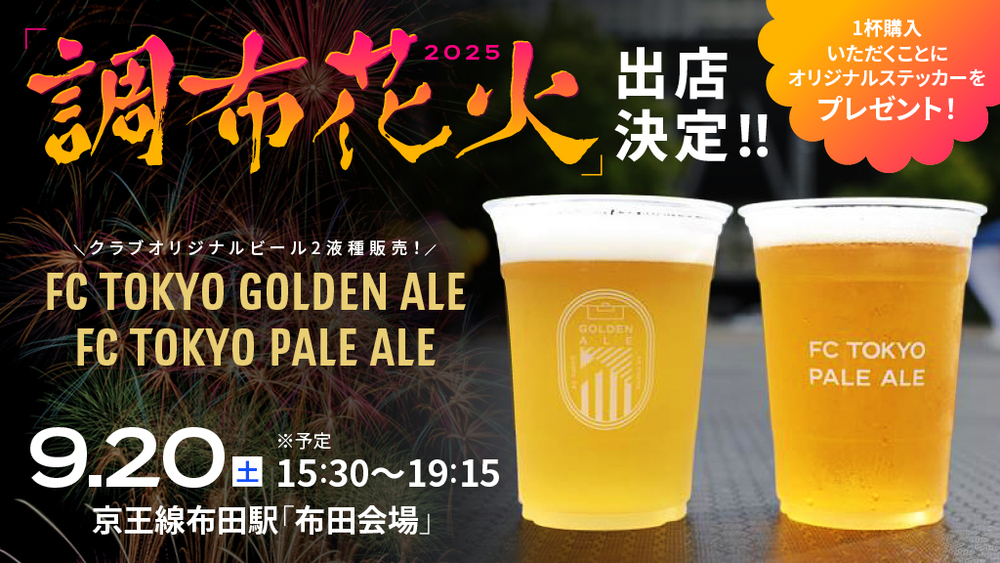 9月20日(土)に開催される『調布花火2025』にてFC東京のオリジナルクラフトビールを販売いたします。