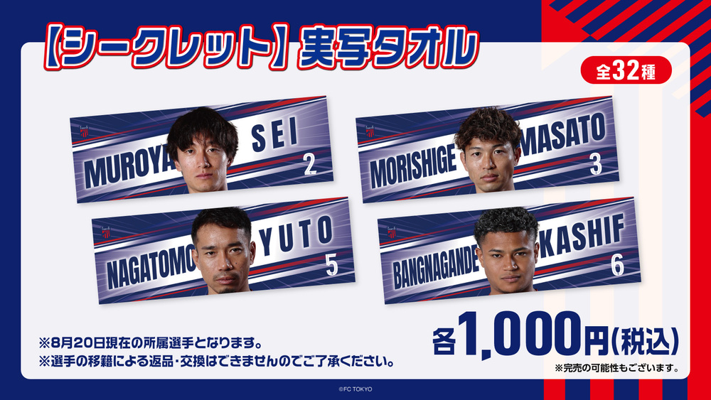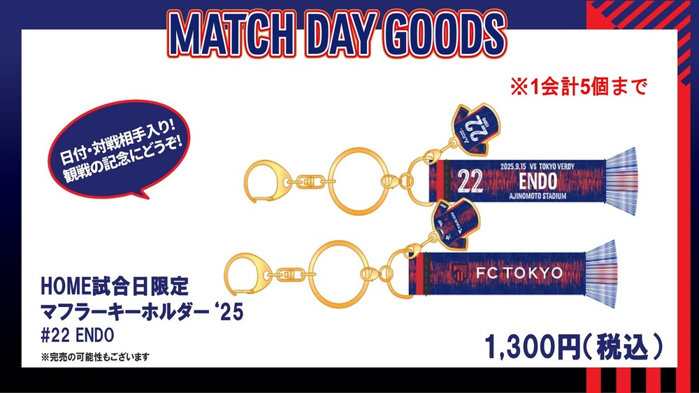 ホームゲーム時に、日付、対戦相手の入ったマッチデーグッズを販売いたします。選手も毎回異なります!試合観戦の記念にぴったりな商品となっております。