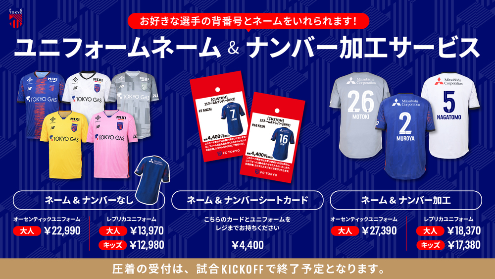 最短30分でお渡しが可能となっております!推し選手のユニフォームを着用してチームへの応援お願いいたします。