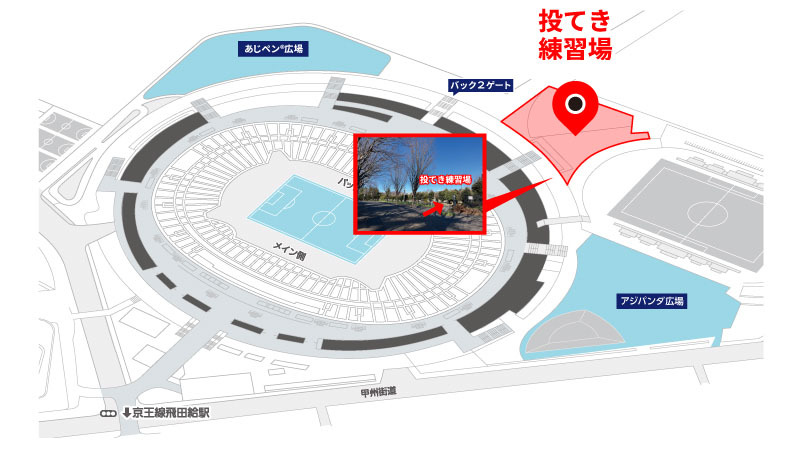 味の素スタジアムあじペン広場(北側広場)、アジパンダ広場(南側広場)、投てき練習場