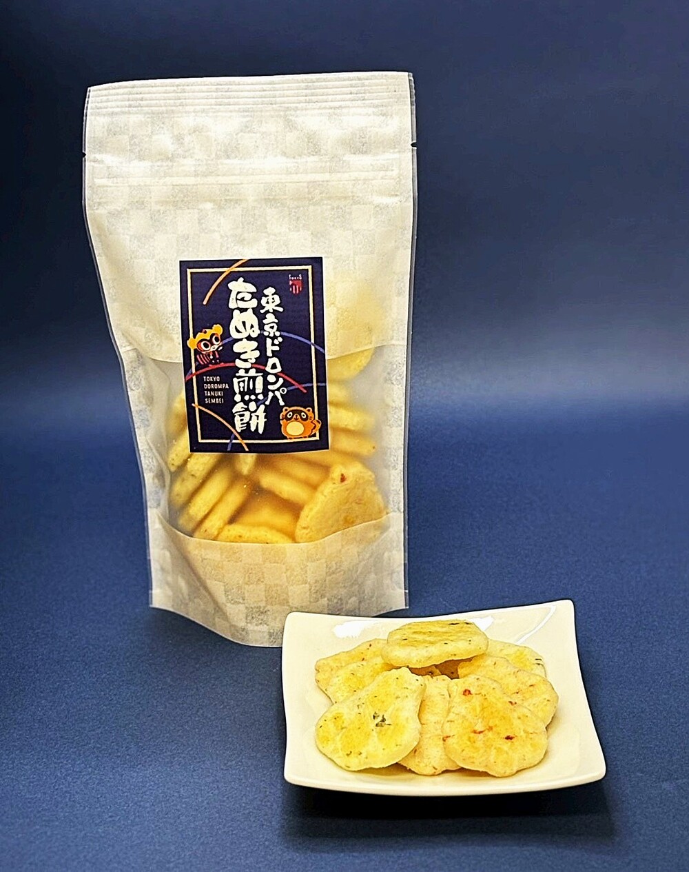 クラブカラーをイメージし、風味豊かな『“青”のり狸』と香ばしい『“赤”エビ狸』を一袋に!