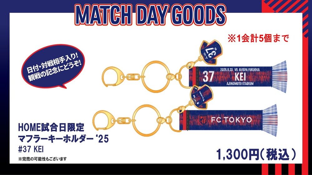 ホームゲーム時に、日付、対戦相手の入ったマッチデーグッズを販売いたします。選手も毎回異なります!試合観戦の記念にぴったりな商品となっております。