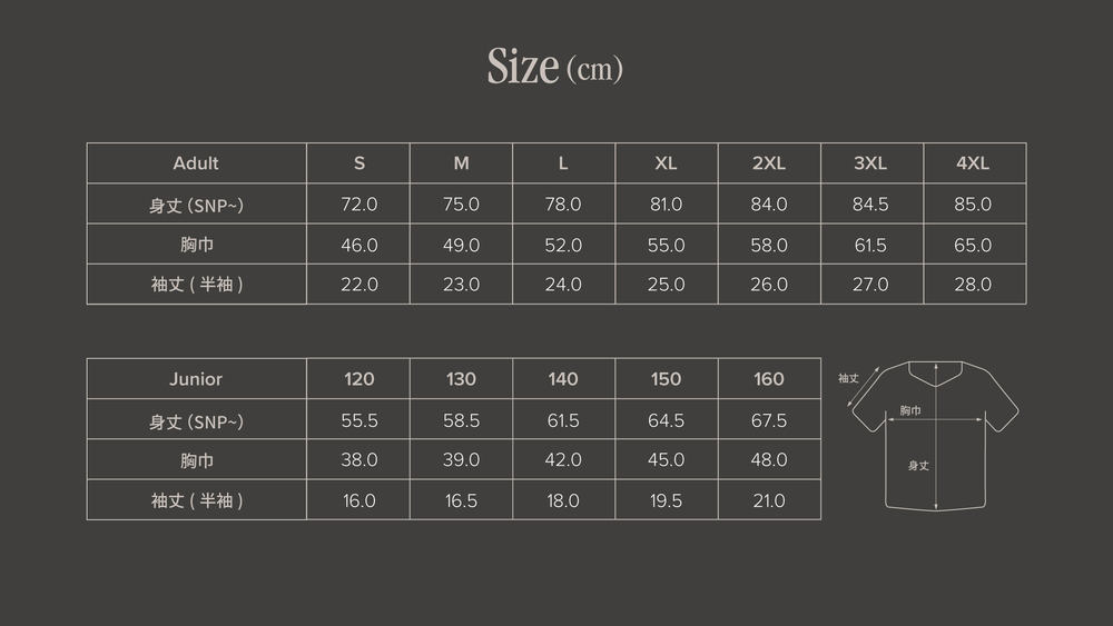 ※リーグ用1st・2ndユニフォームと同じサイズです。
