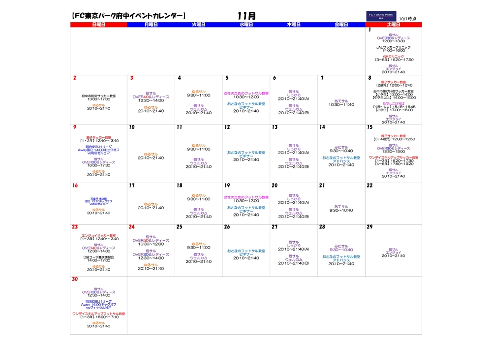 【パーク府中】11月普及部コーチ指導イベント参加者募集のお知らせ